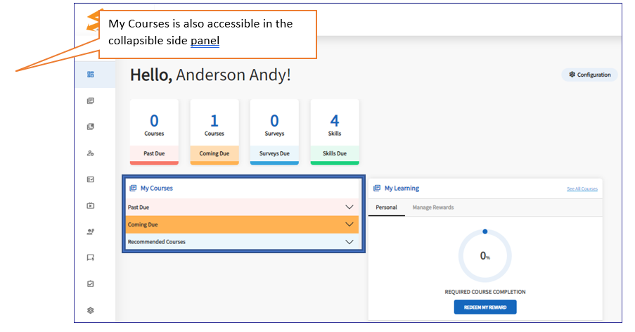 My Courses is where the staff will view the courses that have been assigned to them.