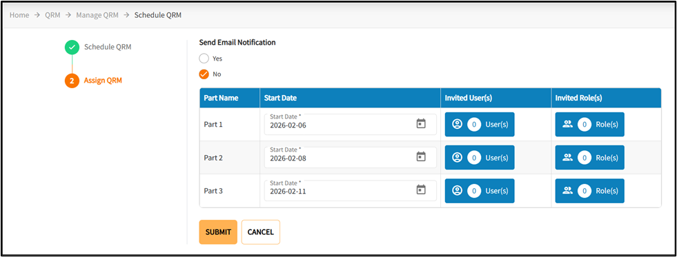 10. Invite Roles, select those roles (ie. QRM IPAC) that are responsible for completing the audit(s)