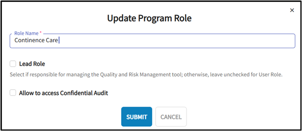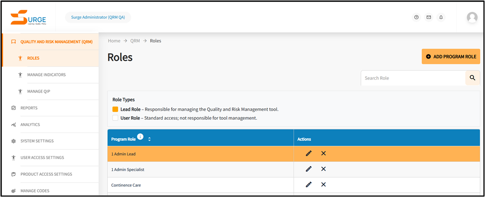 - To Edit a Role, click on the pencil icon next to the role or to add a role Click on the Add Program Role