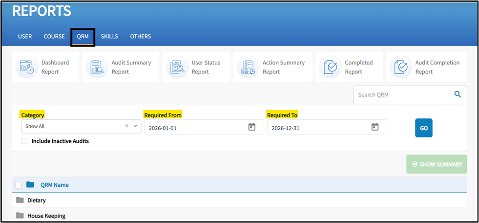 Audit Summary Report - This report provides a summary of responses and results for one or multiple audits. It also includes a Deficiencies Summary tab, which offers an overview of deficient responses and associated actions for one or multiple audits.