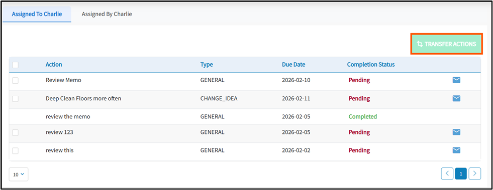 - Click Transfer Action. A pop-up window will appear.