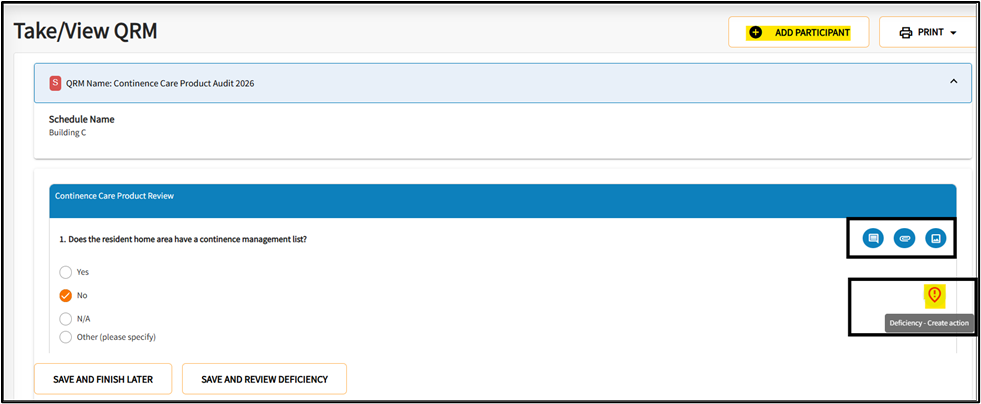 d. When you select an answer that is considered non compliant, a warning ICON will pop up. This is where you can create an action plan to address the issue.