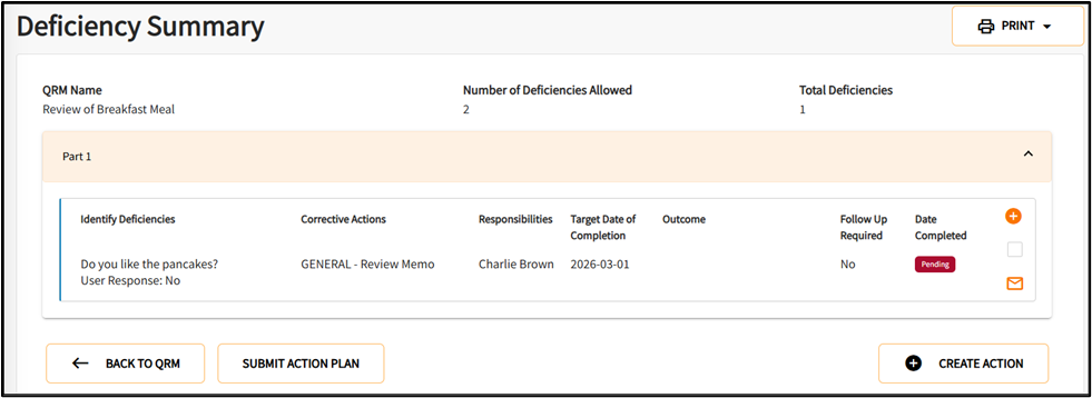 Back to QRM - Allows you to go back and review your responses, and add overall actions to address any missed opportunities for improvement.