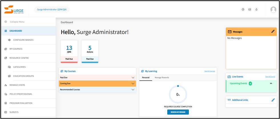 - Main Menu - Click on the QRM icon located on the left hand side main menu